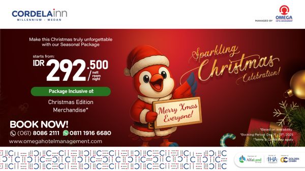 Celebrate Christmas in Medan with a comfortable staycation at Cordela Inn Millennium Medan through a special seasonal package designed for the holiday season. Enjoy a cozy room, friendly service, strategic location, and exclusive Christmas themed merchandise that creates warm and memorable moments for families, couples, and travelers seeking a relaxing and joyful Christmas holiday experience in the city.